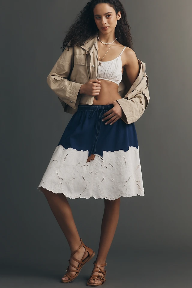Maeve Edie Asymmetrical Stitched Midi Skirt