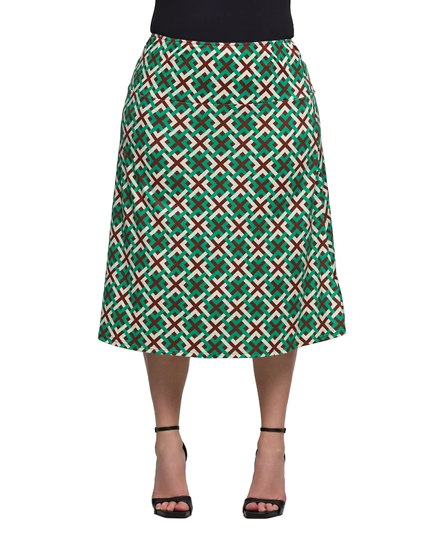 24seven Comfort Apparel Women's Green Geometric Print Comfortable Elastic Waist Knee Length Skirt