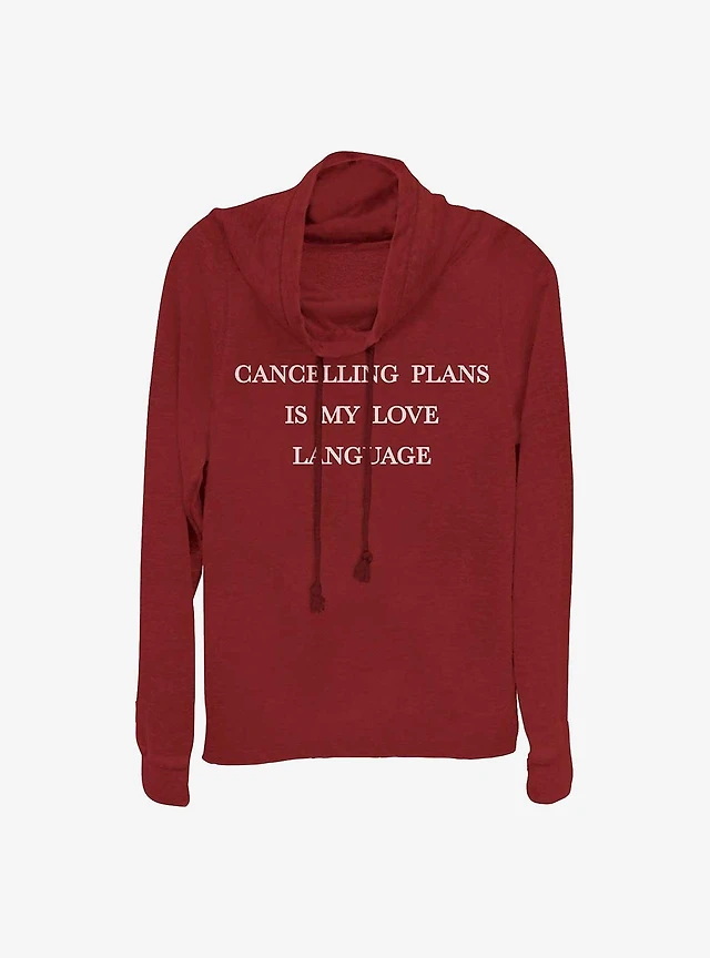 Cancelling Plans Is My Love Language Girls Cowl Neck Long Sleeve Top