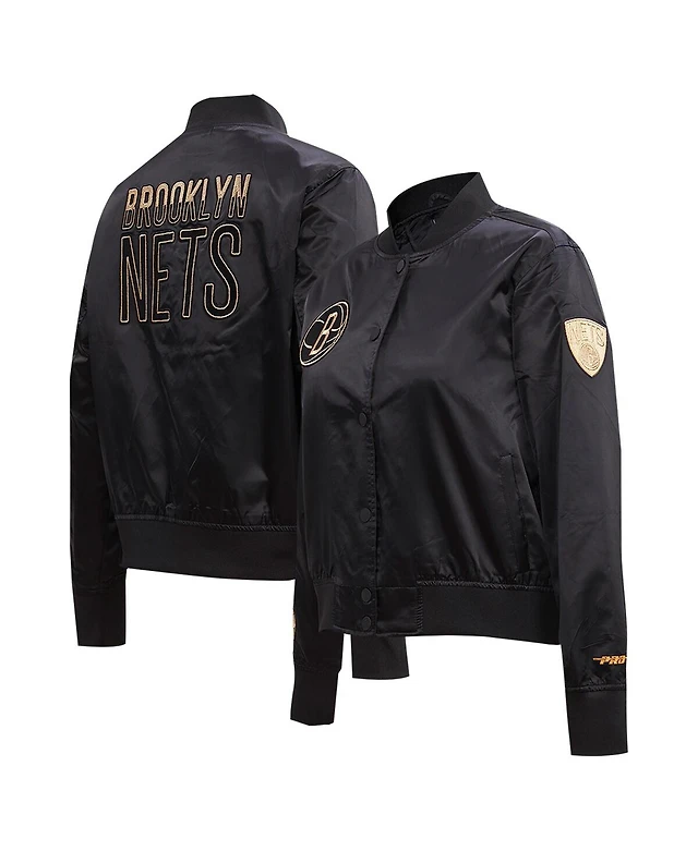 Women's Pro Standard Black Brooklyn Nets Glam Satin Full-Snap Varsity Jacket
