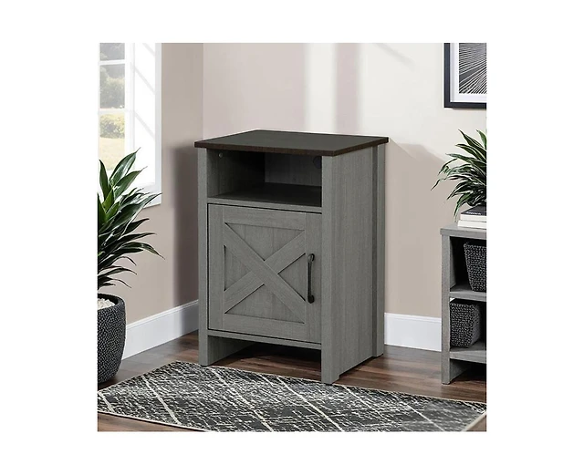 Salento 2 Freestanding Utility Base Cabinet with Stainless Steel Countertop and 2-Door, Smokey Oak