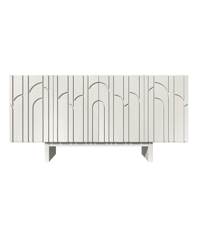 55"Modern Farmhouse Sideboard Cabinet with 4 Doors & Drawers, Rustic White Wood Coffee Bar Buffet with Adjustable Shelves, Kitchen Storage Cabine
