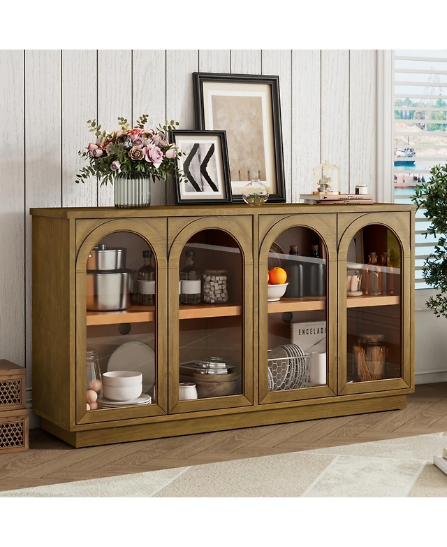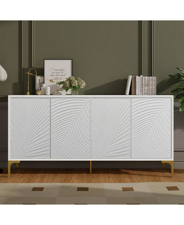 Casainc Carved Storage Cabinet With 4 Door Sideboard Coffee Bar Cabinet With Adjustable Shelf