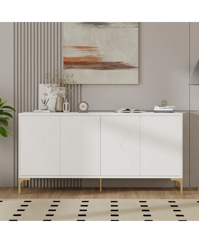 Tribesigns Modern Storage Cabinet, 59 Inch Console Cabinet Sideboard Buffet Cabinet with 4 Doors & Gold Metal Base, Entryway Cupboard Furniture for Li