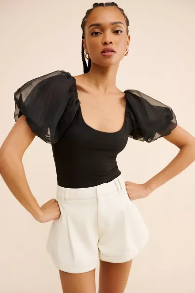 By Anthropologie Waisted Puff-Sleeve Blouse
