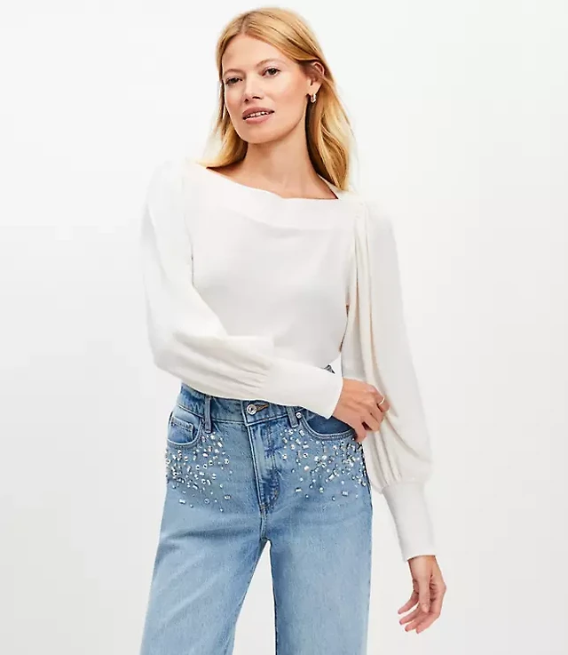 Heathered Puff Sleeve Boatneck Top