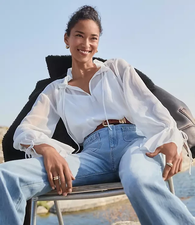 Eyelet Puff Sleeve Henley Top