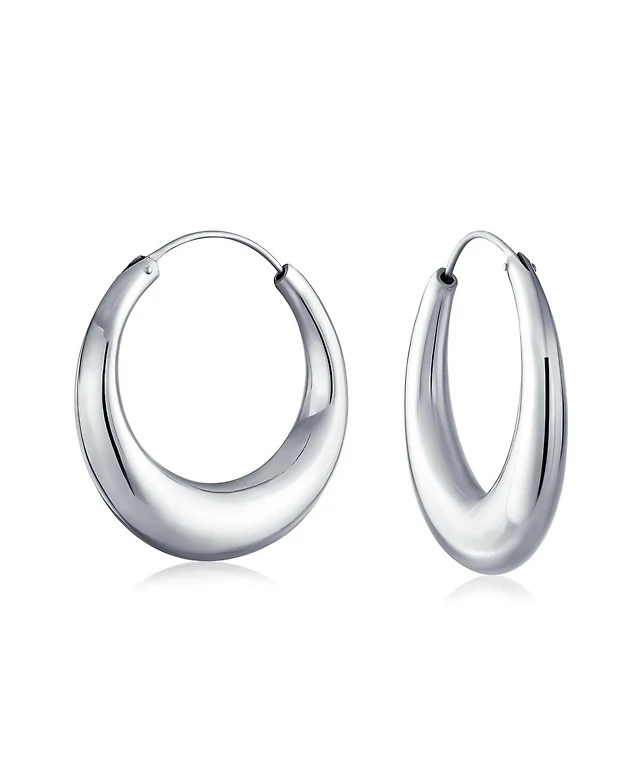 Bling Jewelry Classic Round Paper Clip Link Open Anchor Puff Mariner Chain Hoop Earrings Silver Gold Plated 1.25 Inch