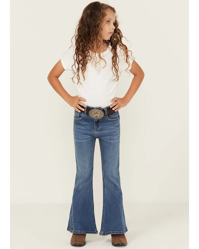 Shyanne Girls' Medium Wash Double Horseshoe Pocket Bootcut Stretch Denim Jeans