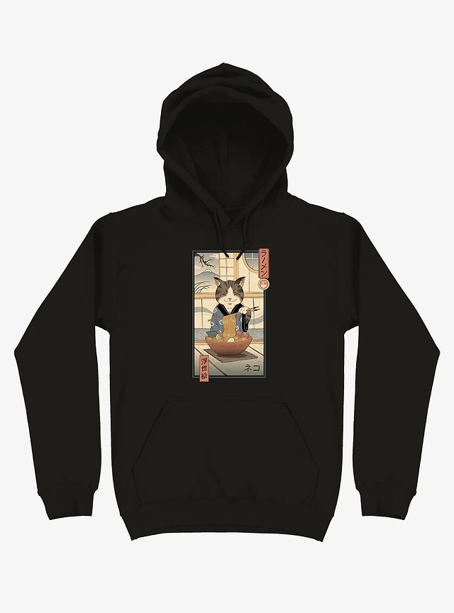 Cat Neko Ramen Ukiyo-e Black Hoodie