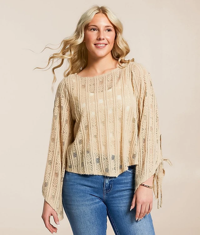 Petite Floral Lace Long Sleeve Crew Neck Tee