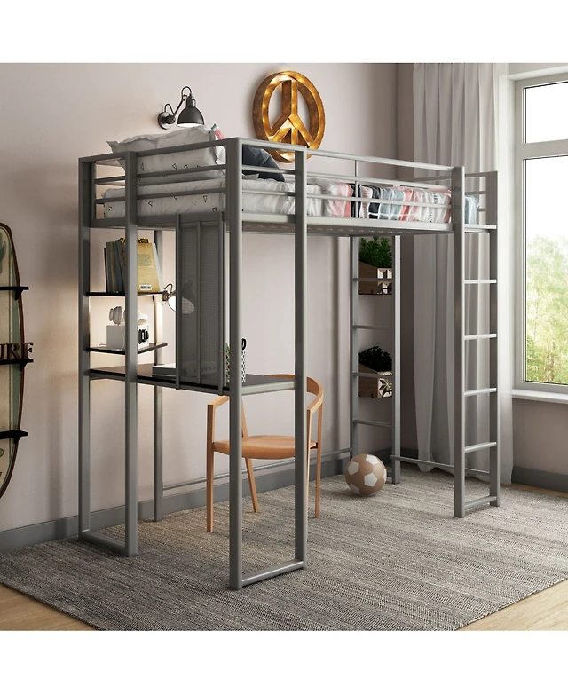 Streamdale Twin Metal Loft Bed With Desk And Shelve
