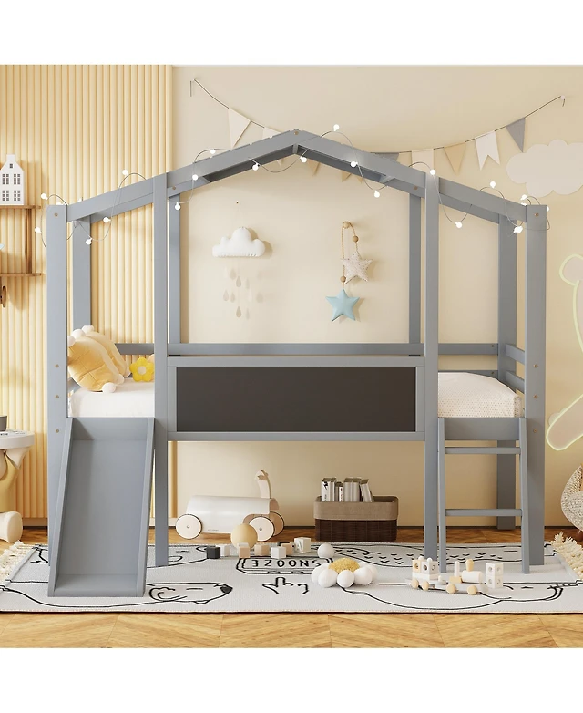 Streamdale Twin Over House Loft Or Bunk Bed With Slide And Staircase