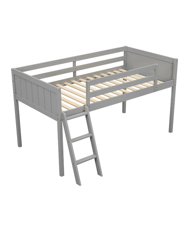 Twin Low Loft Bed with Ramp Ladder & Bookcases Full-length Safety Guardrail