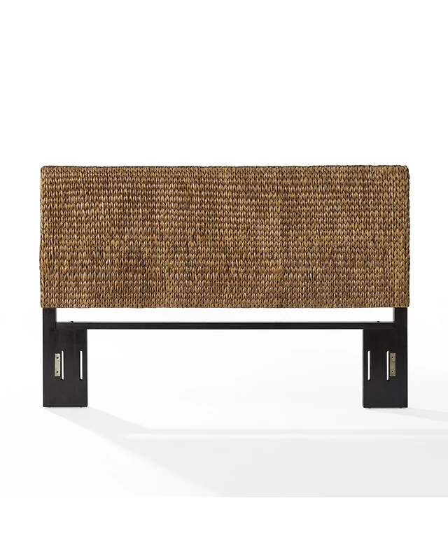 LuxenHome Natural Finish Rubberwood with Rattan Panel Headboard, Queen