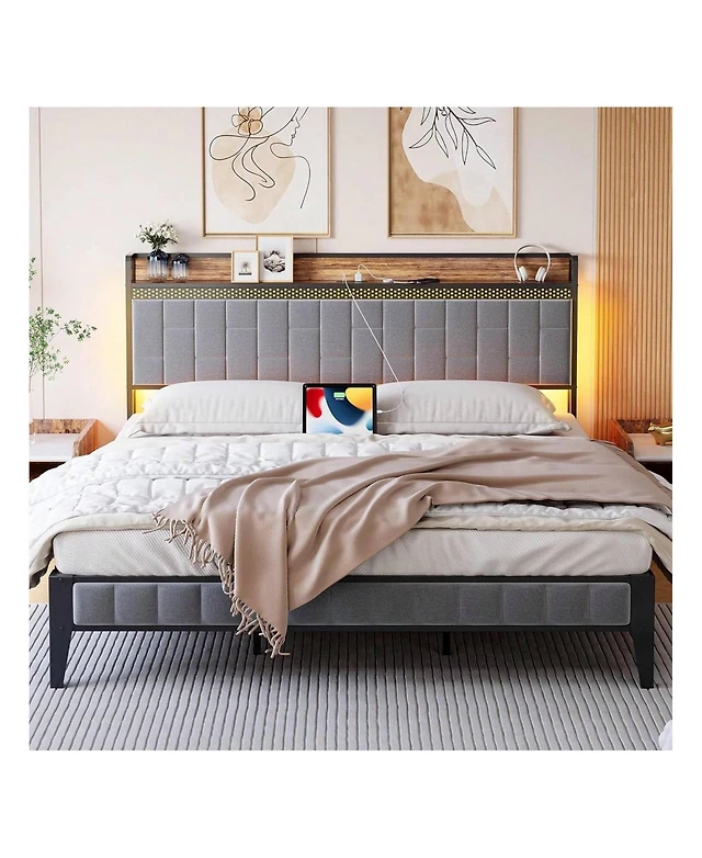Streamdale Queen Upholstered Platform Bed with Storage, Led, Usb