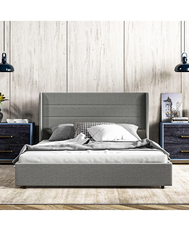 Slickblue Linen Upholstered Platform Bed With Button Tufted Headboard