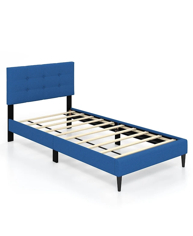 Wood Upholstered Twin Bed Platform with Slat Support