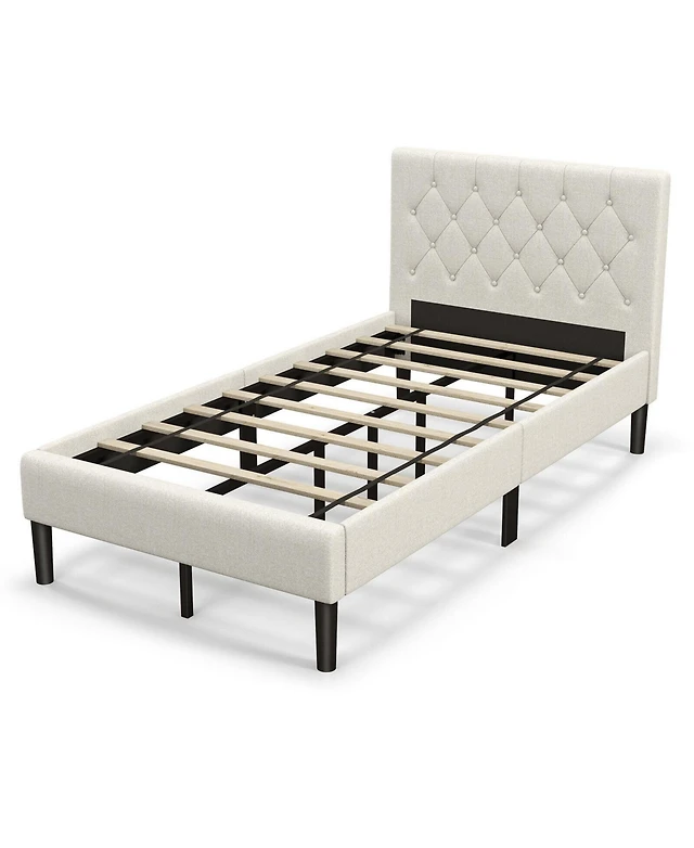 Sugift Twin Upholstered Platform Bed with Button Tufted Wingback Headboard-Blue