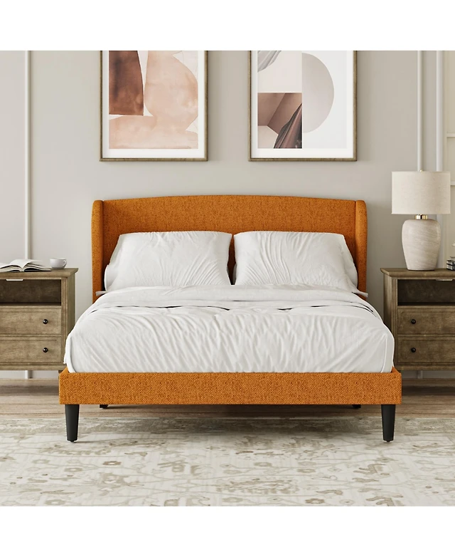 Percy Modern Platform Bed With Padded Channel Stitched Upholstered Wingback Headboard