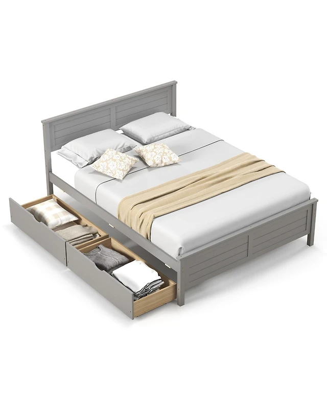 Gymax Full Size Wooden Bed Frame W 2 Storage Drawers Under Bed Storage Gray