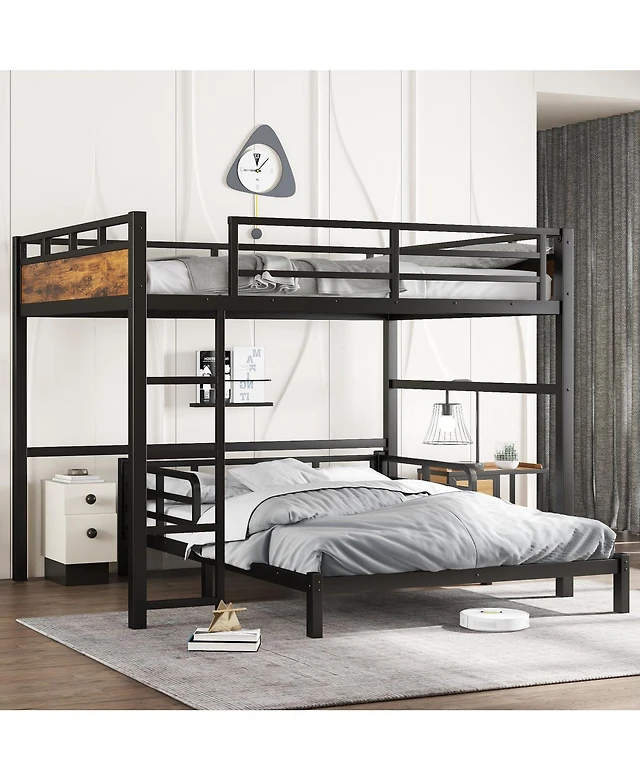 Streamdale Full Xl over Queen Bunk Bed with Ladder and Guardrails, Walnut