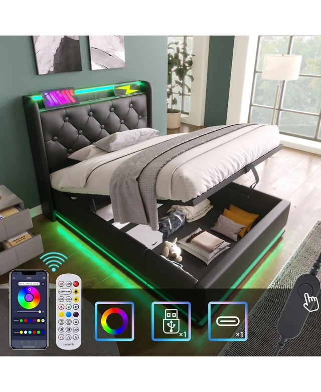 Sugift Bed Frame with Led Lights and Charging Station