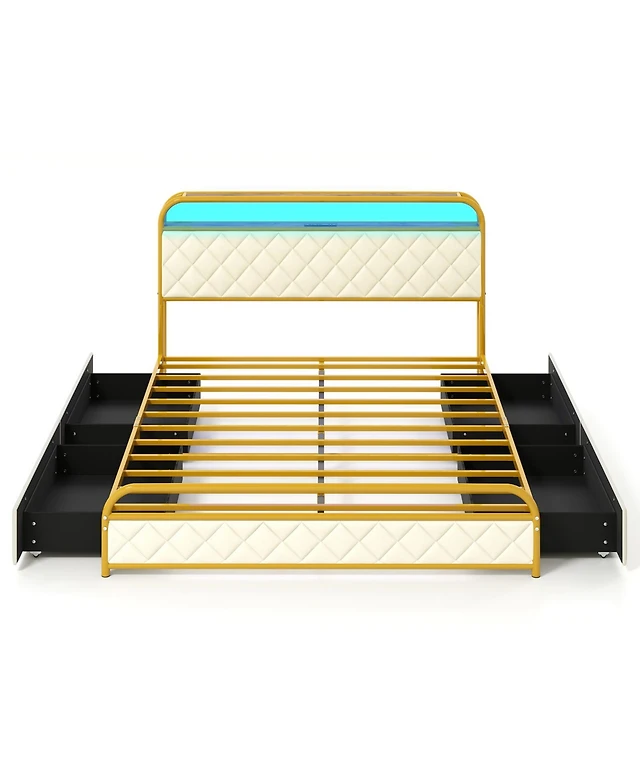 gaomon Full Led Bed Frame with 4 Storage Drawers and Headboard, Soft Boucle Upholstered Platform Charging Station Usb Ports