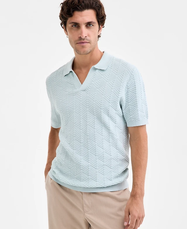 Cotton Open Knit Pointelle Johnny Collar Short Sleeve Sweater Polo