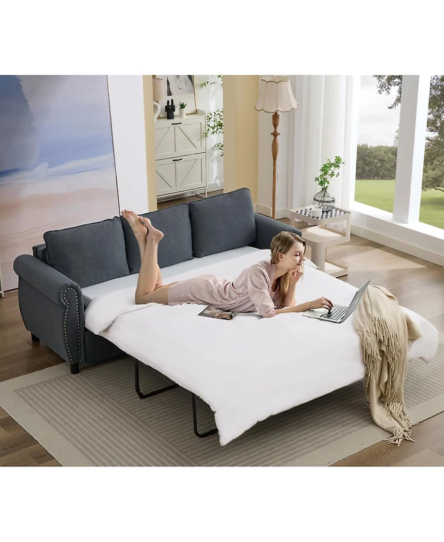 Streamdale Furniture Queen Pull Out Sofa Bed, 3-in-1 Convertible Sleeper, Velvet Loveseat - Grey