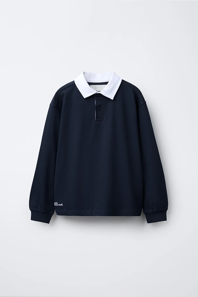 Ribbed polo shirt with stand collar