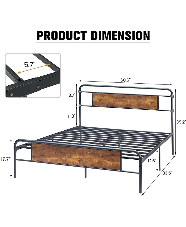 Boyel Living Queen Wooden Bed Frame with Headboard Vintage Platform Slats Support Easy Assembly