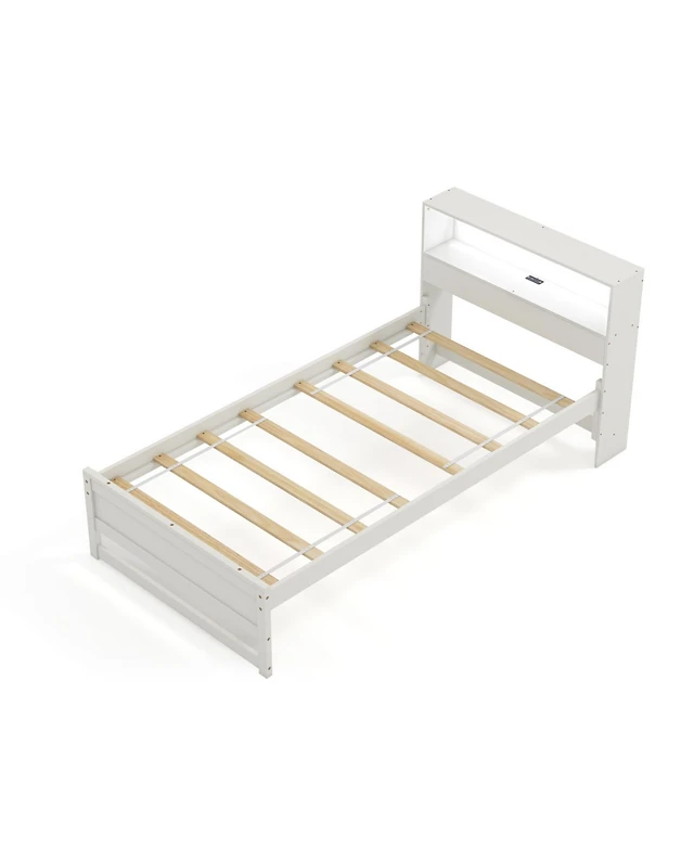 Gouun Twin Size Bed Frame with Storage Headboard and Charging Station