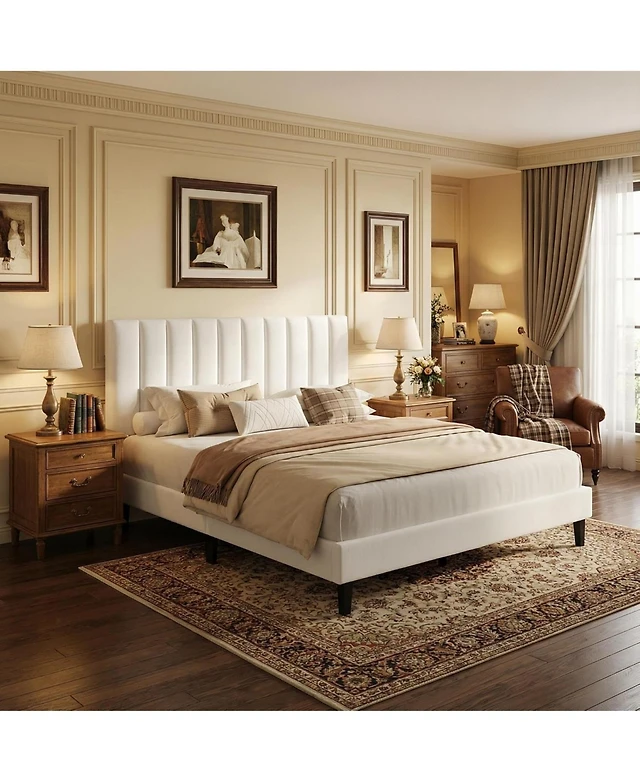 Streamdale Furniture King Size White Pu Leather Upholstered Platform Bed Frame, No Box Spring Needed
