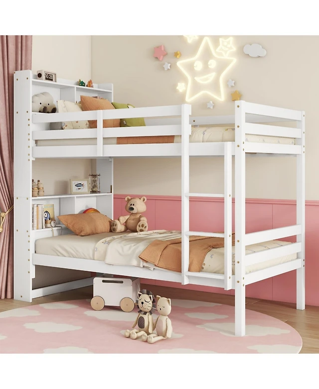 Streamdale Furniture Twin over Twin Loft Bed with Ladder and Reinforced Slats, White