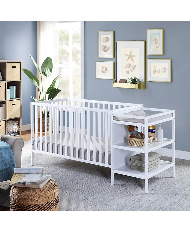 Flynama 3 in 1 convertible crib and changer combo solid wood 3 position mattress support attached changing table storage for baby nursery