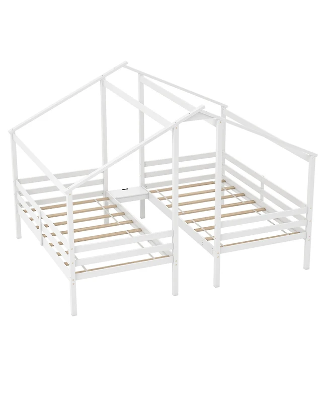 Sugift Twin Size House Bed with House Shape Roof and Semi-Fence