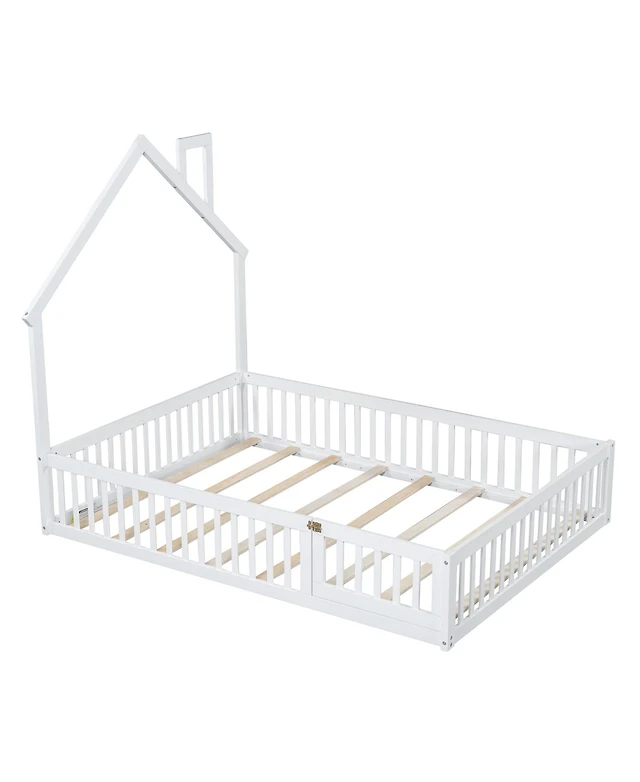Streamdale Furniture Twin Size Floor Wooden Bed with House Roof Frame