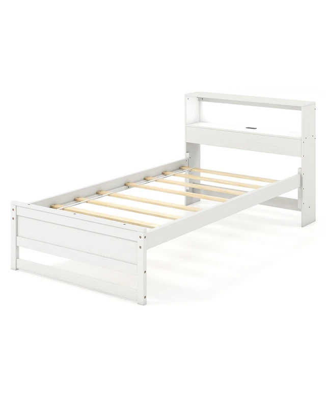 Gymax Twin Wooden Bed Frame w/ Charging Station & Led Light Storage Headboard