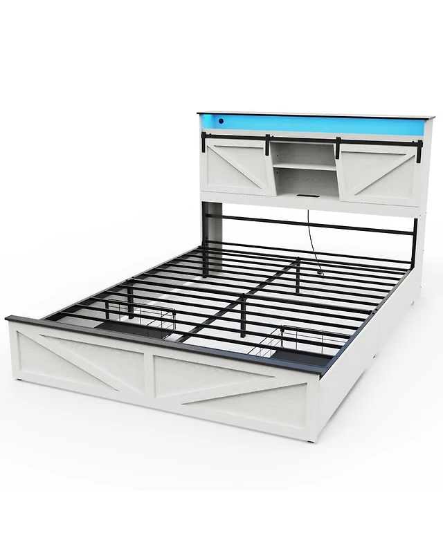 gaomon Full Size Boucle Led Bed Frame with 4 Storage Drawers, Storage Headboard, Charging Station, Usb Ports, White