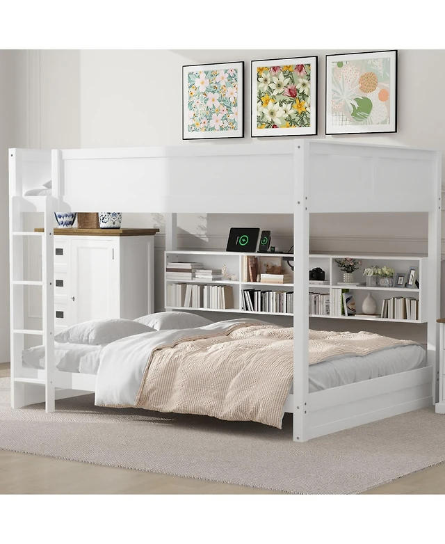 Streamdale Furniture Queen Over Bunk Bed with Storage Shelves and Usb Ports