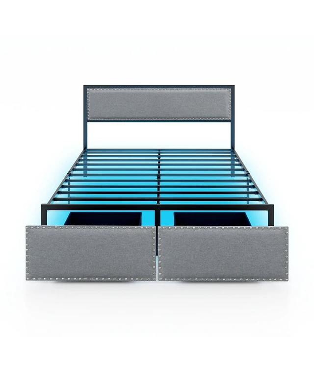 gaomon Queen Bed Frame With 2 Drawers Upholstered Platform Bed Led Headboard No Box Spring Easy Assembly