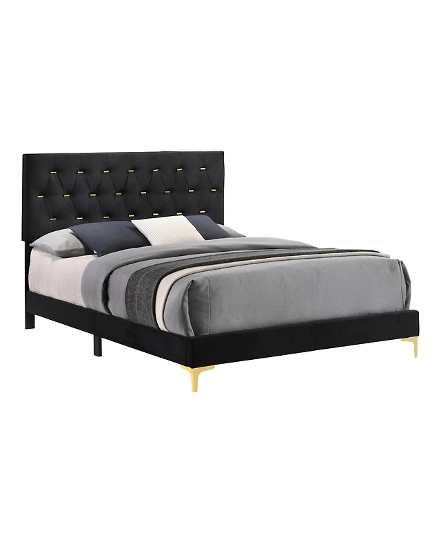 Monarch Specialties Bed - Queen Size Velvet with Trim
