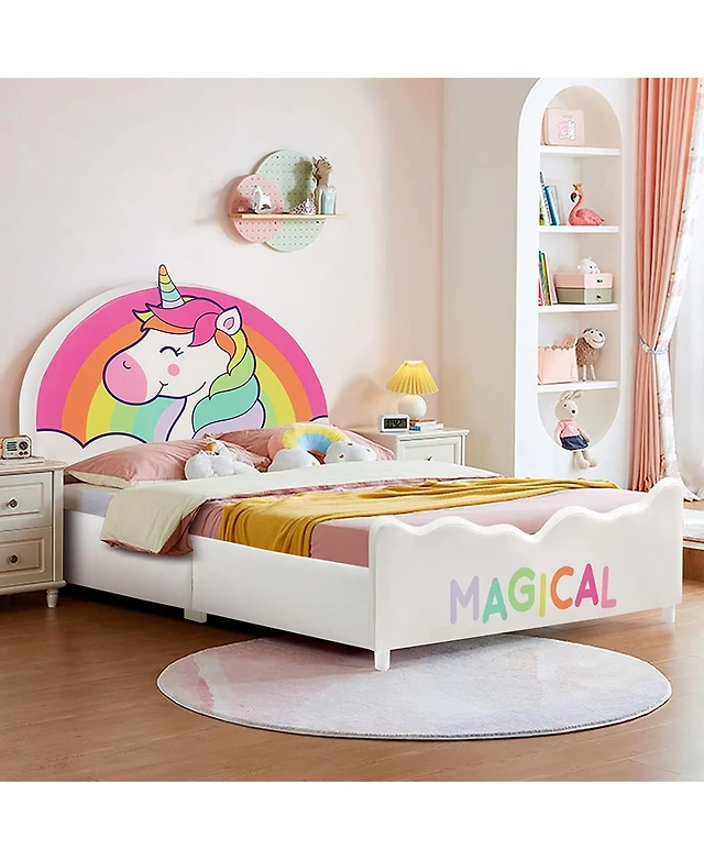 Kids Children Pu Upholstered Platform Wooden Princess Bed Bedroom Furniture