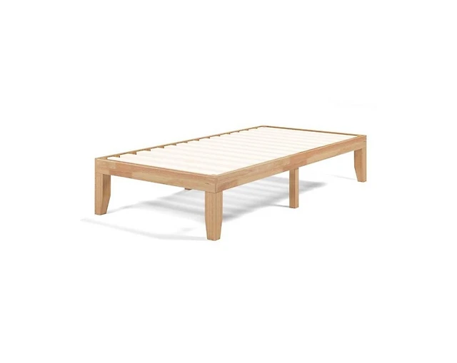 Gouun 14 Inch Twin Size Rubber Wood Platform Bed Frame with Wood Slat Support