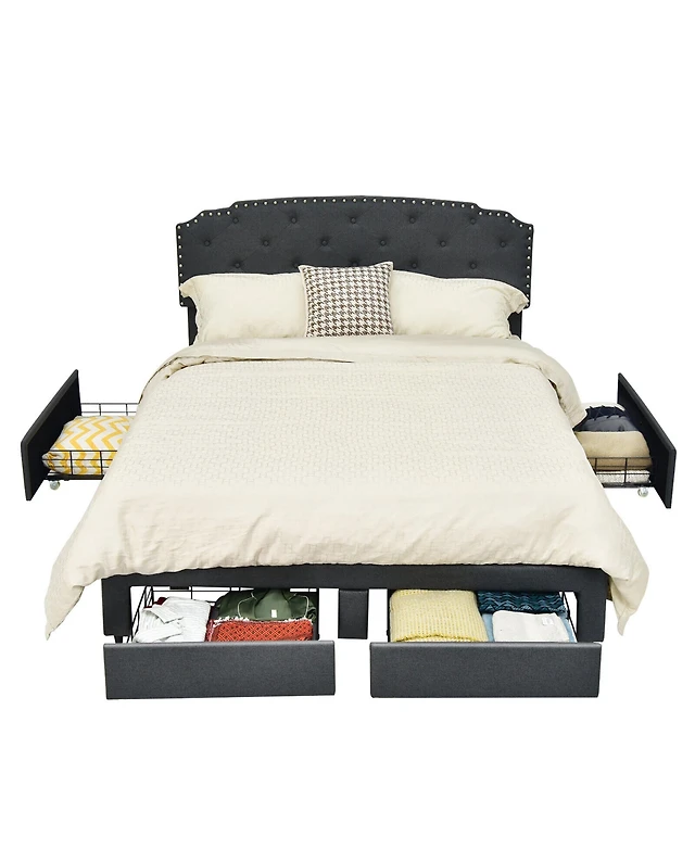 Streamdale Gray Linen Platform Bed with Usb Ports & Drawers