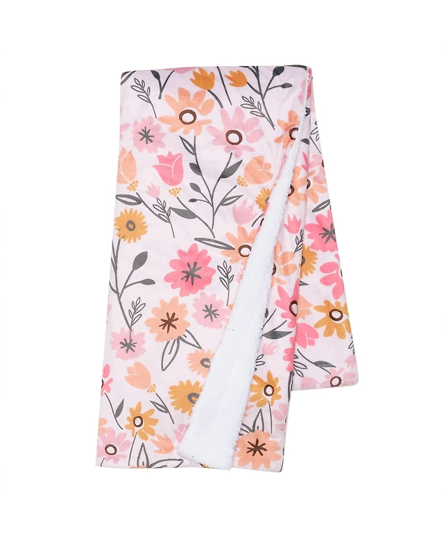 Lambs & Ivy Little Garden Soft Luxurious Pink Floral Warm Fleece Baby Blanket