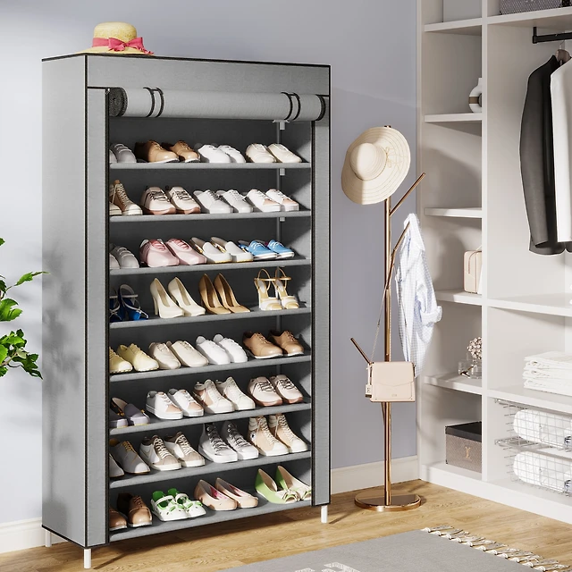 Slickblue 7-Tier Portable Shoe Rack with Fabric Cover for Organized Storage and Closet Organization