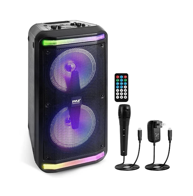 Pyle Portable Pa Speaker & Microphone System With Led Party Lights, Bluetooth, & Fm Radio, 600 Watt