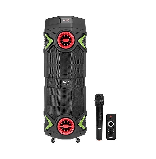Pyle Dual 8” Portable Pa Speaker with Bluetooth, Flashing Party Lights, Usb/Sd/Fm Radio & Wireless Microphone